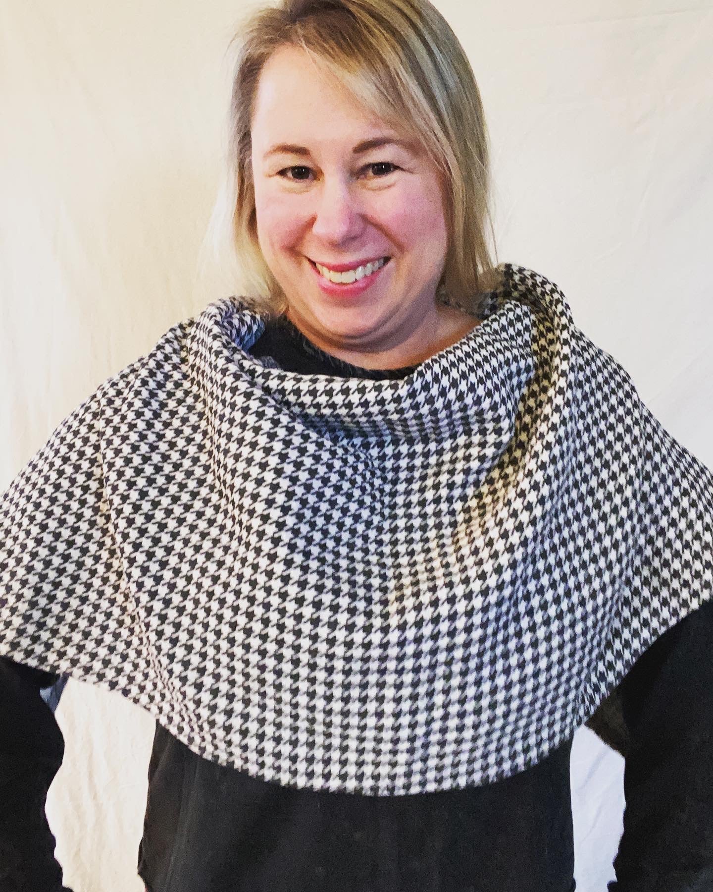 The perfect reversible shawl that converts from scarf to wrap to poncho and back again. Whatever you need it to do, it’s your trusty wrap for all occasions. It’s lightweight feel and wrinkle-free fabric is what makes it great for travel and beyond. Handmade in the USA. Made from 100% organic cotton material with coordinating fabrics and nickel free snaps.
